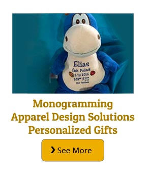 In addition to our professional embroidery we also offer heat Transfers, Custom artwork designs. And for something more special we offer monogramming of apparel and gifts.